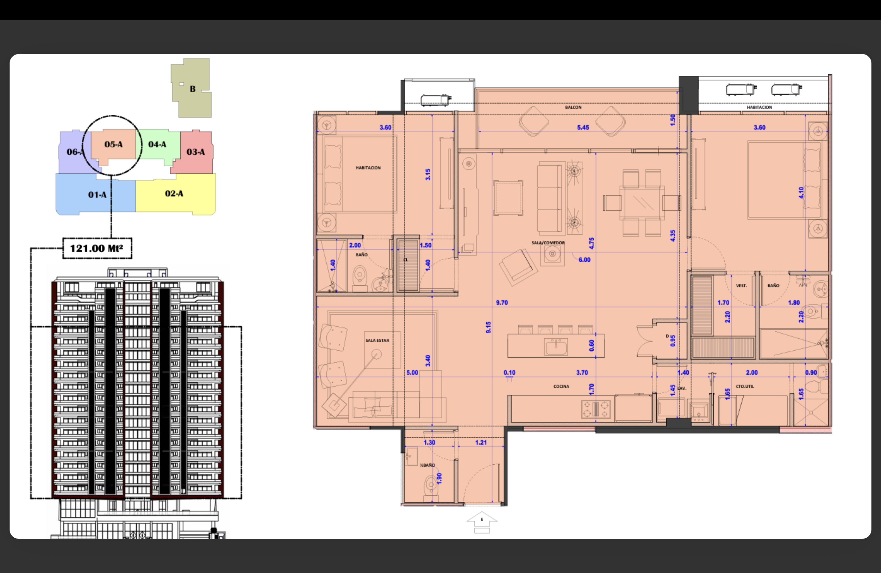 -3 habitaciones, todas las habitaciones con walking closet y baño